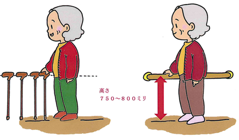 棒をにぎったときに、軽く肘が曲がる程度が丁度良い高さです。